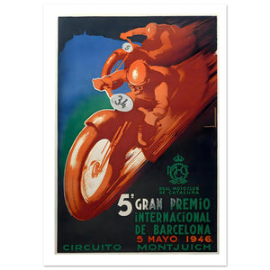 1946 Gran Premio Barcelona Motorcycle Racing Poster