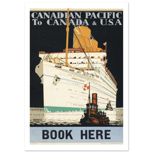 The Canadian Pacific Empress of Britain: Majesty on the Atlantic. Capture the golden age of transatlantic crossings with this dramatic reproduction of a vintage poster by renowned artist Kenneth D. Shoesmith. This iconic piece promotes the luxurious voyages of the RMS Empress of Britain—the flagship of the Canadian Pacific fleet—to Canada & the U.S.A.