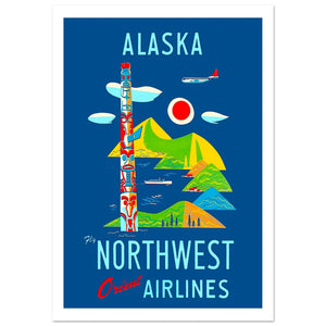 Northwest Orient Airlines Poster Featuring Alaska's Totem Heritage