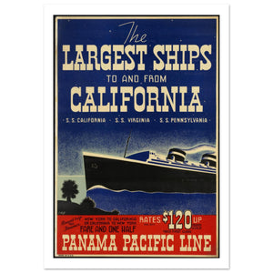Panama Pacific Line "The Largest Ships to and from California" Vintage Poster