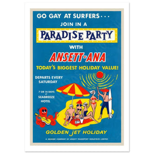 Vintage Ansett-ANA Travel Poster for a Surfers Paradise Holiday