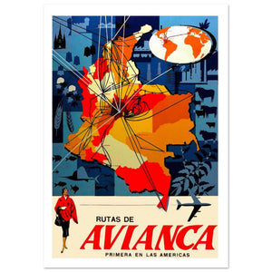 Vintage Avianca Map Poster Highlighting Colombian Flight Routes