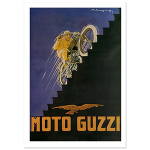 Vintage Moto Guzzi Poster Featuring Thrilling Staircase Ascent