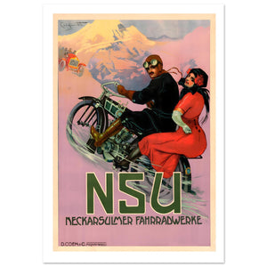 Vintage NSU Neckarsulmer Fahrradwerke Alpine Motorcycle Touring Poster