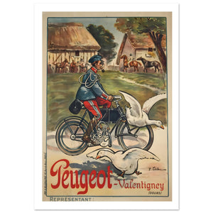 Vintage Peugeot Valentigny French Military Motorcycle Advertising Poster