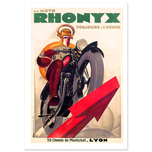 Vintage Rhonyx Motorcycle Poster Emphasizing Speed and Punctuality