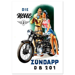 Vintage Zündapp DB 201 Motorcycle Advertisement Poster